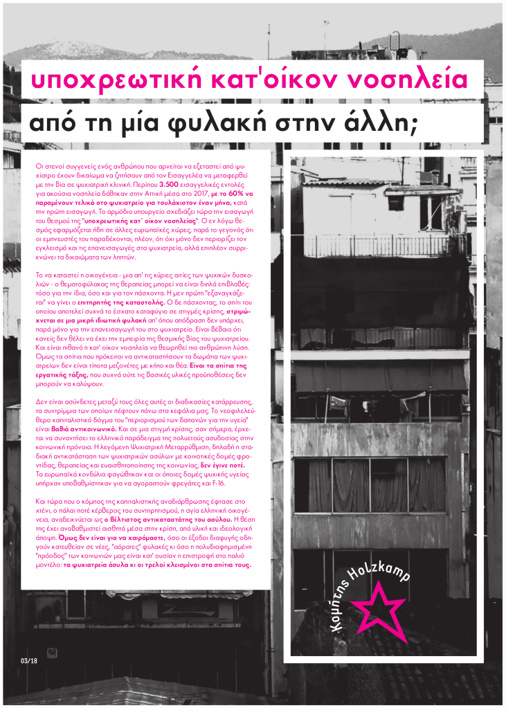 υποχρεωτική κατ’οίκον νοσηλεία*από την μια φυλακή στην άλλη;